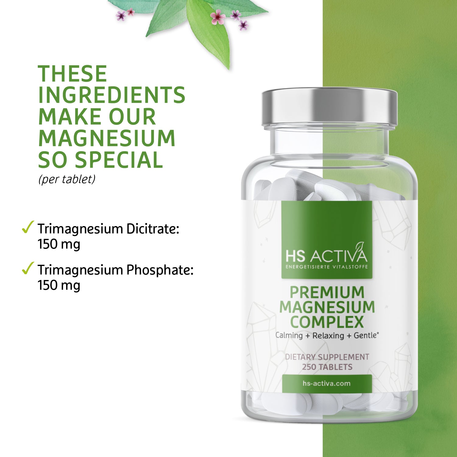 Hinzu kommt: Damit diese 300mg auch im Blut ankommen, benötigen wir sogar 580mg Magnesium, also das Doppelte pro Tag.